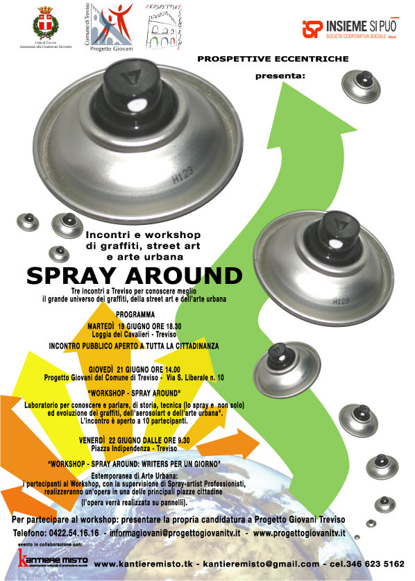 Sei un giovane appassionato di Street Art e graffiti? Oppure ti piacerebbe conoscere meglio questo colorato e variegato mondo? …iscriviti a “SPRAY AROUND” – WORKSHOP SULL’ARTE URBANA completamente GRATUITO che si terrà a Treviso il 21 e il 22 giugno 2012.