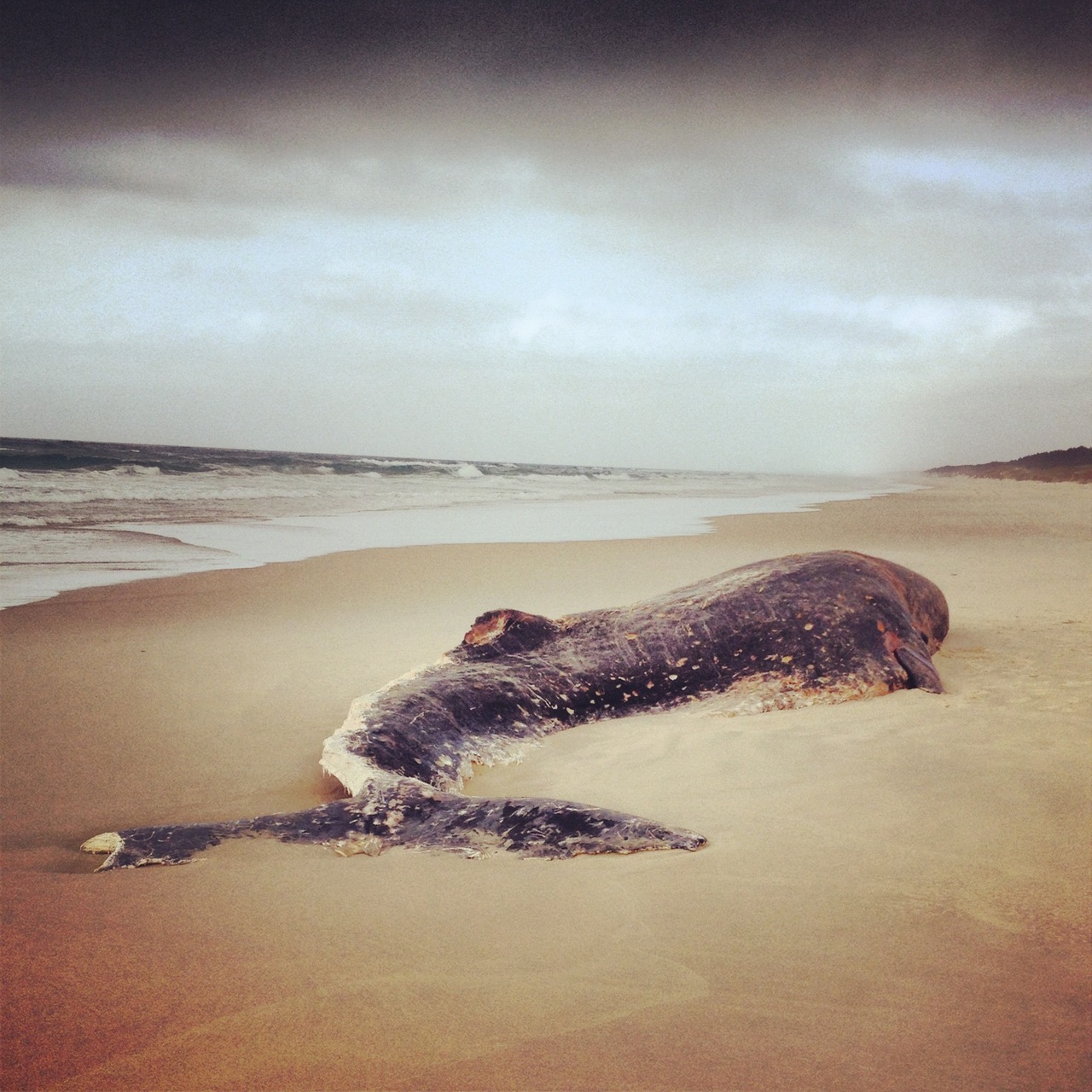 Sfortunatamente, la massa scura si rivela essere una balena spiaggiata. L’avanzato stato di decomposizione non dà adito a dubbi: è morta da tempo.