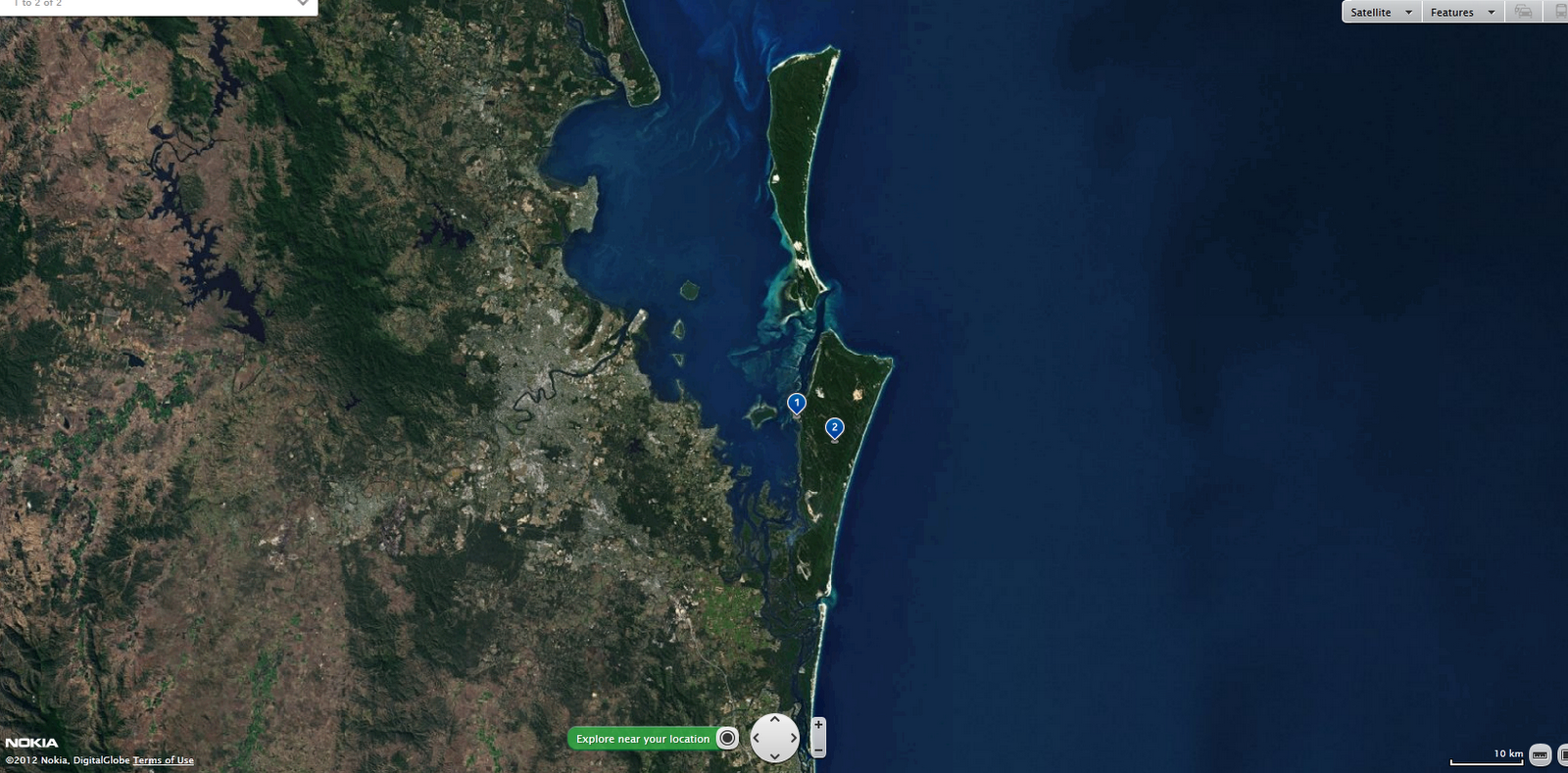 L’isola più a Nord è Bribie, collegata alla terraferma da un ponte che la rende l’ideale meta di famiglie e pensionati giusto all’ingresso della Sunshine Coast. Moreton, invece, è più che altro un parco, ma il resort turistico ne polarizza tutte le attività. Stradbroke (con i segnalini blu nella foto), da noi scelta, presenta invece una miscela frizzante di natura, abitazioni e perfino industria mineraria. Infine c’è South Stradbroke, piccolina e spesso dimenticata.