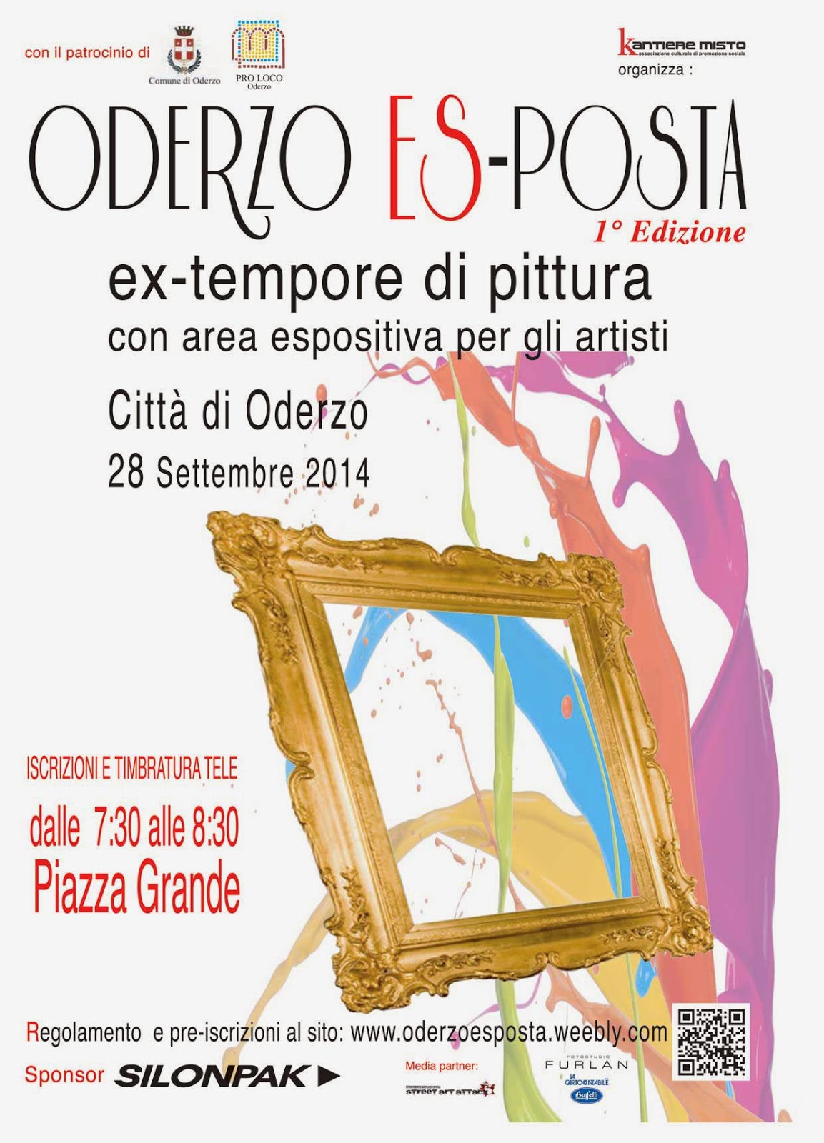 L’associazione “Kantiere Misto”, con il patrocinio del Comune e la collaborazione della Pro Loco di Oderzo, organizza per domenica 28 settembre una ex-tempore di pittura nel centro storico opitergino. L’evento rappresenterà un’occasione per gli artisti di esporre le loro opere e di realizzarne in estemporanea in diversi luoghi della città, partecipando a una gara che mette in palio al primo classificato un buono per l’organizzazione di una mostra personale. Le opere d’arte saranno giudicate da una giuria di esperti, che a inizio manifestazione proporrà un tema di svolgimento. Un sondaggio tra il pubblico eleggerà inoltre il concorrente che avrà raccolto più consensi. Sono accettate tutte le tecniche pittoriche. Con questa iniziativa si intende coinvolgere e mettere in contatto tra loro artisti e associazioni culturali di artisti, e promuovere Oderzo come città promotrice dell’arte.